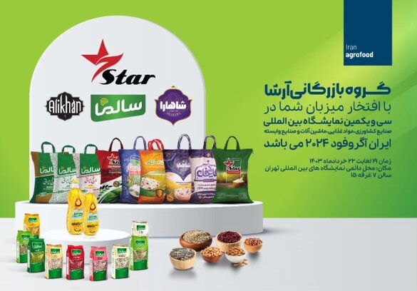 گروه بازرگانی آرشا در عرصه صنعت غذا با برندهای مطرح سون استار، اعتبار، سالما، عالیخان و شاهارا معرفی می شود ودر نمایشگاه ایران اگروفود در سالن ۷ شماره ۱۵ میزبان بازدیدکنندگان است.