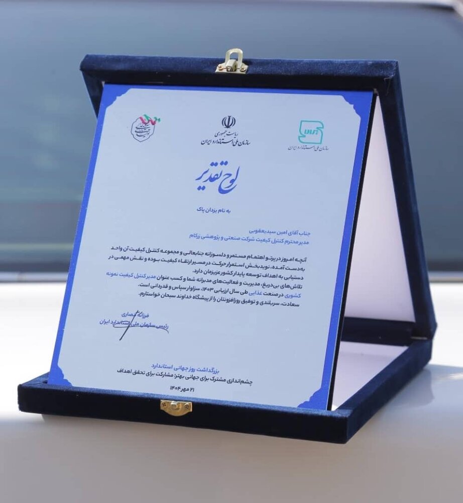 در این مراسم همچنین با حضور رئیس جمهور از برگزیدگان، مدیران و تولیدکنندگان نمونه کشوری در حوزه استاندارد تقدیر شد.